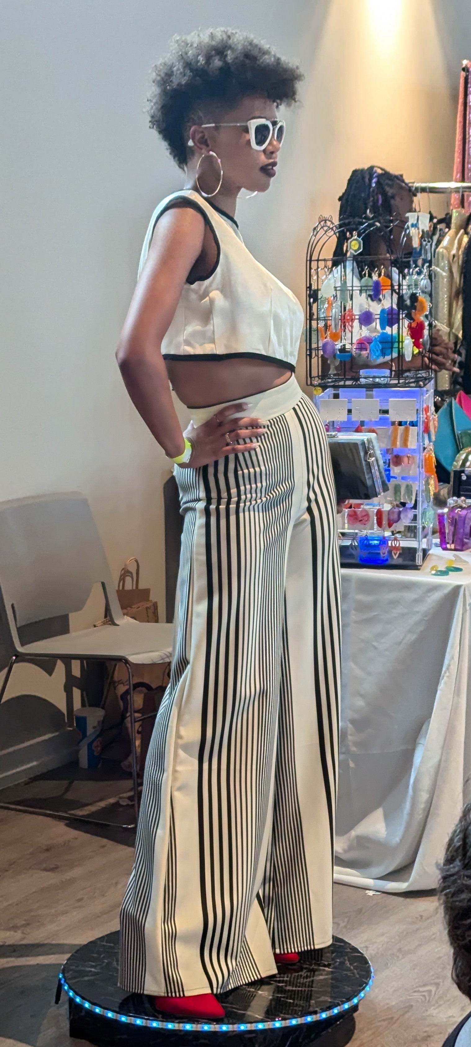 Black and White Striped Cotton Wide-Leg Pants (Size S) - Waist: 26", Inseam: 34"